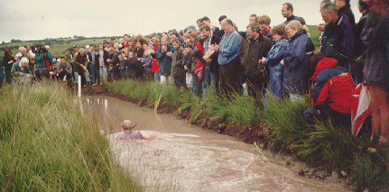 Competitors must snorkel through dirty, smelly mud water for two lengths of a 60 yard trench that has been cut through a peat bog. The snorkeler with the lowest completion time wins. Competitors wear snorkels and flippers (wet suits are optional) and cannot use conventional swimming strokes. The world record time of 1min 35sec is held by Phillip John. The 2007 Bog Snorkeling championships will take place on August 27 in the small town of Llanwrtyd Wells in Wales.